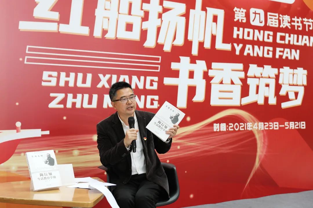 深入挖掘行知文化中的红色元素,读书节开幕式“杭科味”满满。在教授荐书环节,谢列卫为大家带来《陶行知生活教育学说》的阅读分享,并向学生代表赠书。他回顾了伟大教育家、杰出的民主战士、优秀的大众诗人陶行知与劳苦大众休戚与共,与共产党人亲密无间的一生,阐述了“生活教育学说”对现当代教育事业产生的巨大影响,对学校培养“知行合一”高素质劳动者和技术技能人才的现实指引。“通过此书,我们可以读懂一名伟大教育家的初心,读懂中国近现代教育理论发展的勃勃生机,读懂中国人民在实现教育自由、平等、富强中的不懈努力和强大自信”。