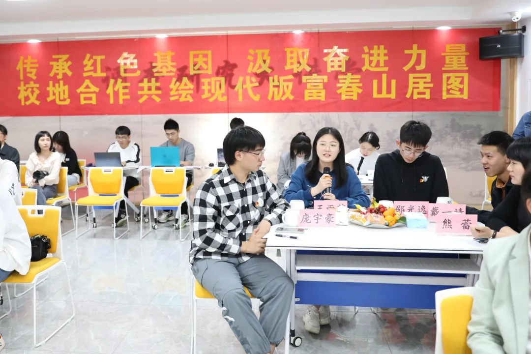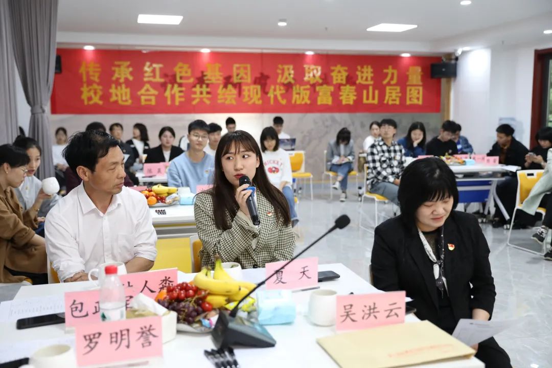 合作共建,提升专业的同时服务富阳经济社会发展,老师同学都有点子。罗明誉希望校地双方积极搭建平台,推进支部共建;马克思主义学院院长吴太胜、思政教师熊蕾准备把思政课堂搬到东洲来,进一步丰富“走读山乡生活课堂”思政品牌的内容;旅游管理学院党总支书记戴雯准备在东洲办民宿培训,助力东洲发展民宿经济、绿色经济;科技处处长陈晨觉得双方在产业人才培养和科技创新上有着广阔的合作空间;宣传部副部长陈韵雯提出打造“行走的党史课”的新设想,进一步讲述好东洲的红色历史。