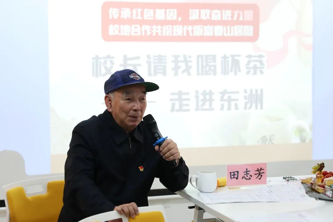 4月27日,杭科院“校长请我喝杯茶”活动迎来了41期:东洲专场。师生们来到现代版富春山居图的卷首之地,学党史、看展馆、谈心得,回顾党的光辉历程,汲取奋进力量,畅想校地合作新的广阔空间。86岁老党员,原浙江工业大学副校长,浙江工业大学党史宣讲团成员田志芳为师生做主题党课。校党委书记谢列卫,校党委委员、副校长赵悦林,校党委委员、组织部部长罗明誉,校党委委员、宣传部部长朱宝宏,东洲街道党工委书记费国民,副书记包政军出席活动。科技处、旅游管理学院、马克思主义学院等相关负责人、教师代表,学生党员、入党积极分子代表参加。
