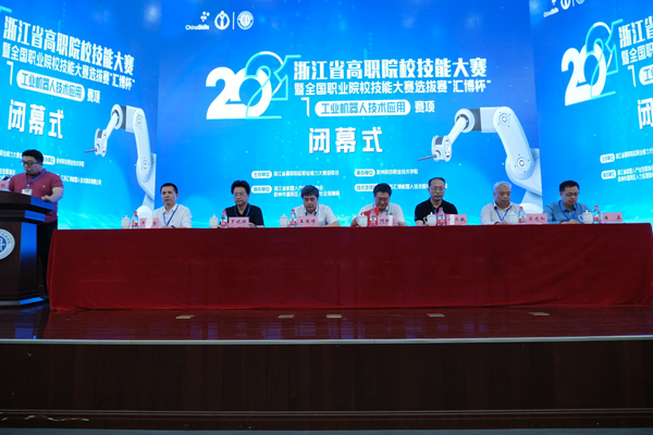 5月10日,2021年浙江省高职院校技能大赛暨全国职业院校技能大赛选拔赛“工业机器人技术应用”赛项在我校举行。该赛项由浙江省教育厅主办,我校承办,江苏汇博机器人股份有限公司提供设备和技术支持。富阳区人力资源和社会保障局副局长何燕敏、浙江省机器人产业发展协会秘书长王国耀、广西水利电力职业技术学院梁建和教授、江苏汇博机器人技术股份有限公司浙江区总经理潘磊、我校党委副书记何树贵出席闭幕式。