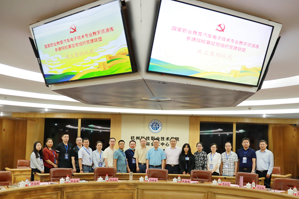 6月1日至2日,国家职业教育汽车电子技术专业教学资源库推进会在杭州科技职业技术学院召开。会上,由山东科技职业学院汽车工程系党总支、财务处直属党支部,杭州科技职业技术学院汽车工程学院党总支、智能制造学院党总支、直属党总支,安徽机电职业技术学院汽车与轨道交通学院党总支联合发起,来自全国各地的15所高职院校的18个基层党组织共同签订共建“国家职业教育汽车电子技术资源库参建院校基层党组织党建联盟”协议,成立跨地域的高职院校基层组织党建联盟。