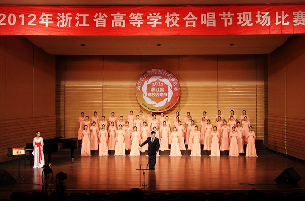 9月25日至26日,2012浙江省高校合唱节在杭州师范大学音乐学院举行。我校大学生艺术团合唱队荣获二等奖,参赛曲目为《妈妈教我一支歌》和《雕花的马鞍》。