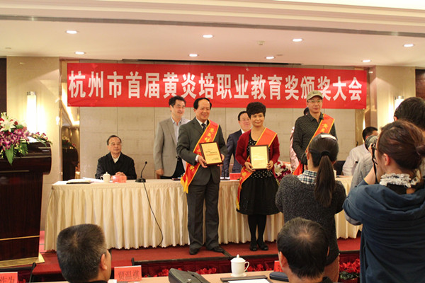 10月31日,杭州市首届黄炎培职业教育奖颁奖大会隆重举行,我校机电工程学院罗晓晔和旅游学院苏永华两位老师获 “杰出教师奖”,工商学院赵建新老师获“优秀理论研究奖”荣誉称号。杭州市副市长、市中华职业教育社主任陈小平出席大会并讲话。大会由杭州市教育局局长沈建平主持。