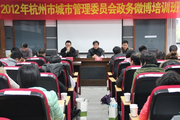 州市城市管理委员会政务微博培训班在我校高桥校区举办。共有来自市城管系统的45名工作人员参加了培训。此次培训班以政府如何运用政务微博为主题,分为理论培训与实践操作两部分。机电工程学院党总支书记陈建松老师为学员们作了题为《政务微博和现状的发展》和《政务微博的应用和管理》的两个专题讲座。理论培训结束后,全体学员还进行了上机模拟实战训练。