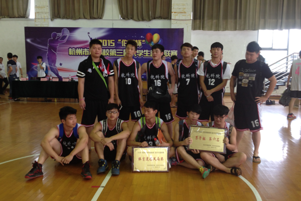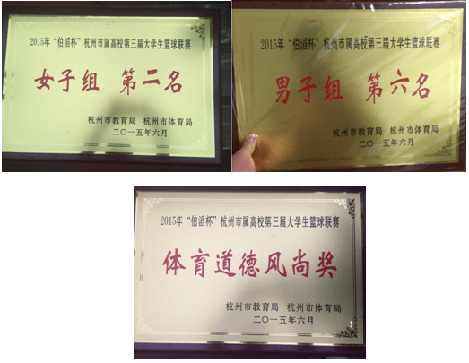 6月15日,由杭州市教育局、市体育局主办,杭州市陈伯滔体育发展基金会协办的2015年“伯滔杯”杭州市属高校第三届大学生篮球比赛在杭州师范大学钱江学院隆重举行。我校学生男、女篮球队参加了此次比赛,经过激烈角逐,最终获得女子组亚军、男子组第六名的好成绩。同时,我校还荣获体育道德风尚奖。此次参赛队由校军体部潘晓萍任领队,毛军平任教练。(毛军平)