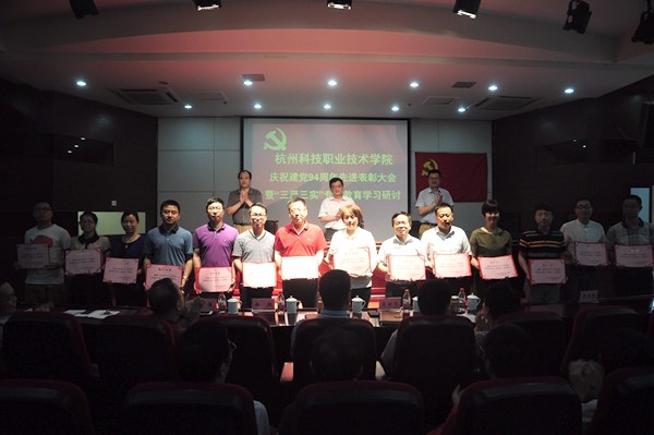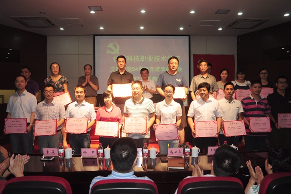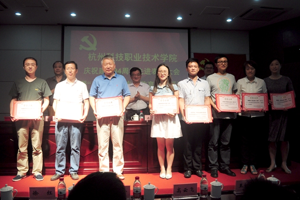 党委副书记张小红宣读了《中共杭州市委教育工作委员会关于表彰先进基层党组织、优秀党务工作者、优秀共产党员的通知》和《关于表彰2014年度校先进基层党组织、优秀共产党员和优秀党务工作者的决定》。直属第一党总支第二支部等8个党支部被授予“先进基层党组织”荣誉称号,苗凯等21位党员被评为“优秀共产党员”,丁水娟等15位同志被评为“优秀党务工作者”。