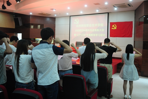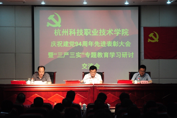7月3日下午,我校“庆祝建党94周年先进表彰大会暨‘三严三实’专题教育学习研讨交流会”在高桥校区陶研馆报告厅举行,会议简洁朴素而又不失隆重。全体校领导班子成员出席大会。全体中层干部、党支部书记、受表彰的先进个人、新发展的党员、教工与学生党员代表等近180人参加了大会。会议由校党委副书记、校长谢列卫主持。