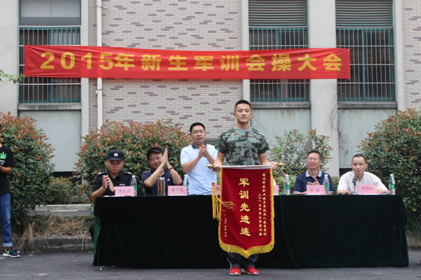2015级汽车检测与维修专业的尤小博作为新生代表发言,号召大家把军训精神带到平时的学习和生活中。