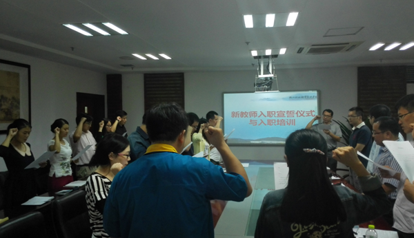 9月23日下午,学校举行了2014至2015学年新入职教师宣誓仪式,并进行了入职培训。副校长何树贵出席仪式,人事处、教务处负责人,全校新入职教师参加仪式。