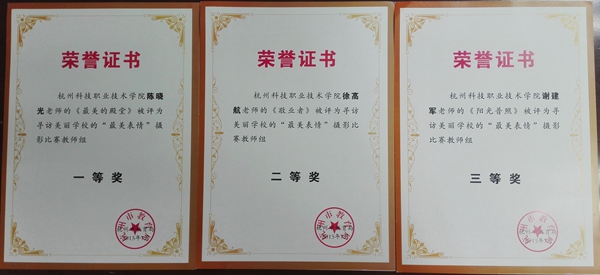 近日,由杭州市教育局主办的寻访美丽学校“最美表情”摄影比赛结果揭晓。我校陈晓光老师的《最美的殿堂》、徐高航老师的《敬业者》、谢建军老师的《阳光普照》分别获得比赛一、二、三等奖。