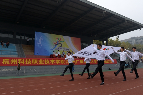 10月23日,我校第八届运动会在高桥校区隆重开幕。校党委书记傅勤,校长谢列卫,副校长何树贵、徐红,纪委书记高云飞,副校长袁俊出席了开幕式。党委书记傅勤代表学校宣布杭州科技职业技术学院第八届运动会开幕。开幕式由校体委副主任、纪委书记高云飞主持。