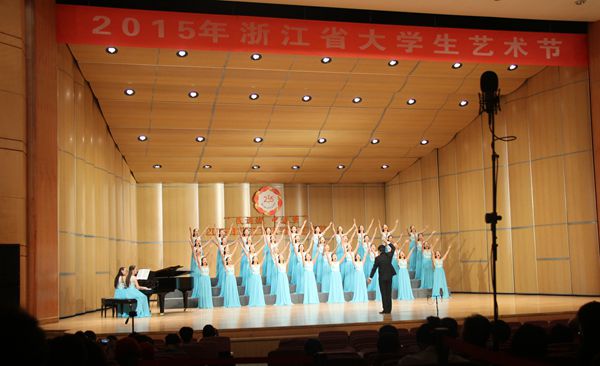 10月23日晚,2015年浙江省大学生艺术节合唱展演在中国计量学院嘉量大会堂举行,我校大学生艺术团合唱团演唱了《葡萄园夜曲》和《生活的节奏》,最终获得大赛合唱甲组(非专业组)一等奖和优秀组织奖。这是我校艺术团合唱团连续第二年获得浙江省大学生艺术节合唱展演一等奖。