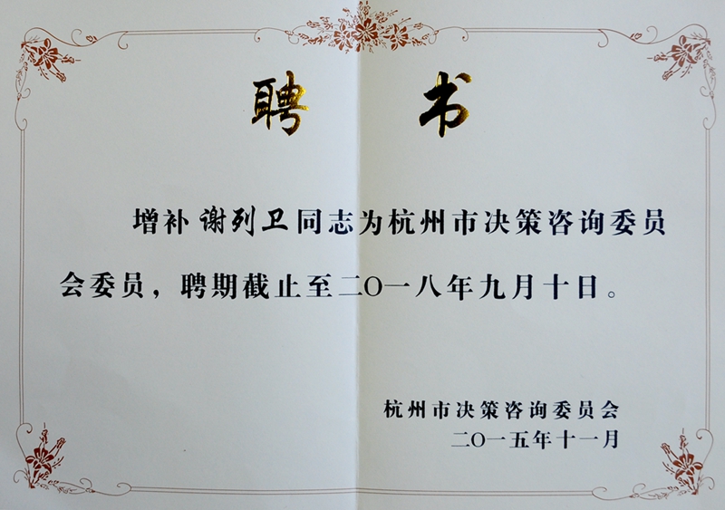 近日,接杭州市决策咨询委员会通知(杭决咨委[2015]4号),我校校长谢列卫与来自浙江大学、浙江工业大学等在杭高校的6位专家被增补为第二届杭州市决策咨询委员会委员。