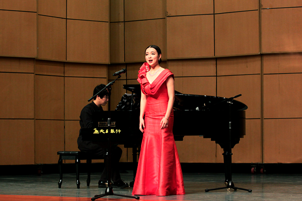 本场音乐专场在一曲热烈欢快、节奏鲜明的《丁香花》声中拉开序幕,优雅动听的旋律深深地打动了在场师生。浙音声歌系师生带来的《草原之夜》、《玛依拉》、《小夜曲》等23首歌曲,赢得台下观众如潮好评。一首首或明快,或婉转,或古典,或现代的歌曲从表演者口中娓娓传来,不管是生僻难懂的外语歌,还是热情奔放的草原之音,亦或是风情十足的民族歌,都被他们演绎得恰到好处。演出最后,全体演员以一首激情昂扬的大合唱 《我爱你,中国》为这场艺术盛宴结尾。