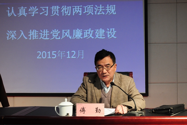 党委书记傅勤认为,学校要高度重视思想政治学习,以深入贯彻学习党的十八大、十八届五中全会精神和习近平总书记系列重要讲话精神,为做好学校事业发展的前提指引,切实增强贯彻落实的思想自觉和行动自觉。他表示,党员干部要全面把握两项法规的基本要义,提高自身的律己用权、严守党的政治纪律和政治规矩的意识,自觉把两部党内法规的规定转化为做人干事的规矩。