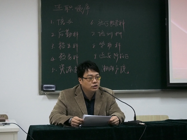 学院综合办公室、学历科、教务科等十个科室负责人从内部管理、工作绩效、工作作风、廉洁自律、创新能力等五个方面对科室工作进行了汇报。