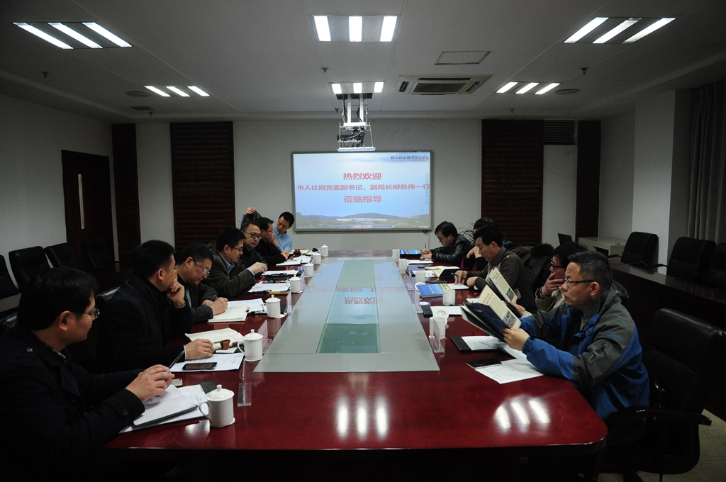3月9日,杭州市人力资源和社会保障局党委副书记、副局长柳胜伟率人社局事业处、工资福利处、专技处等部门负责人来我校调研。校长谢列卫,副校长何树贵、袁俊接待了柳胜伟一行,并进行座谈。党办、校办,人事处,计划财务处,公共事务管理处负责人参加了座谈会。