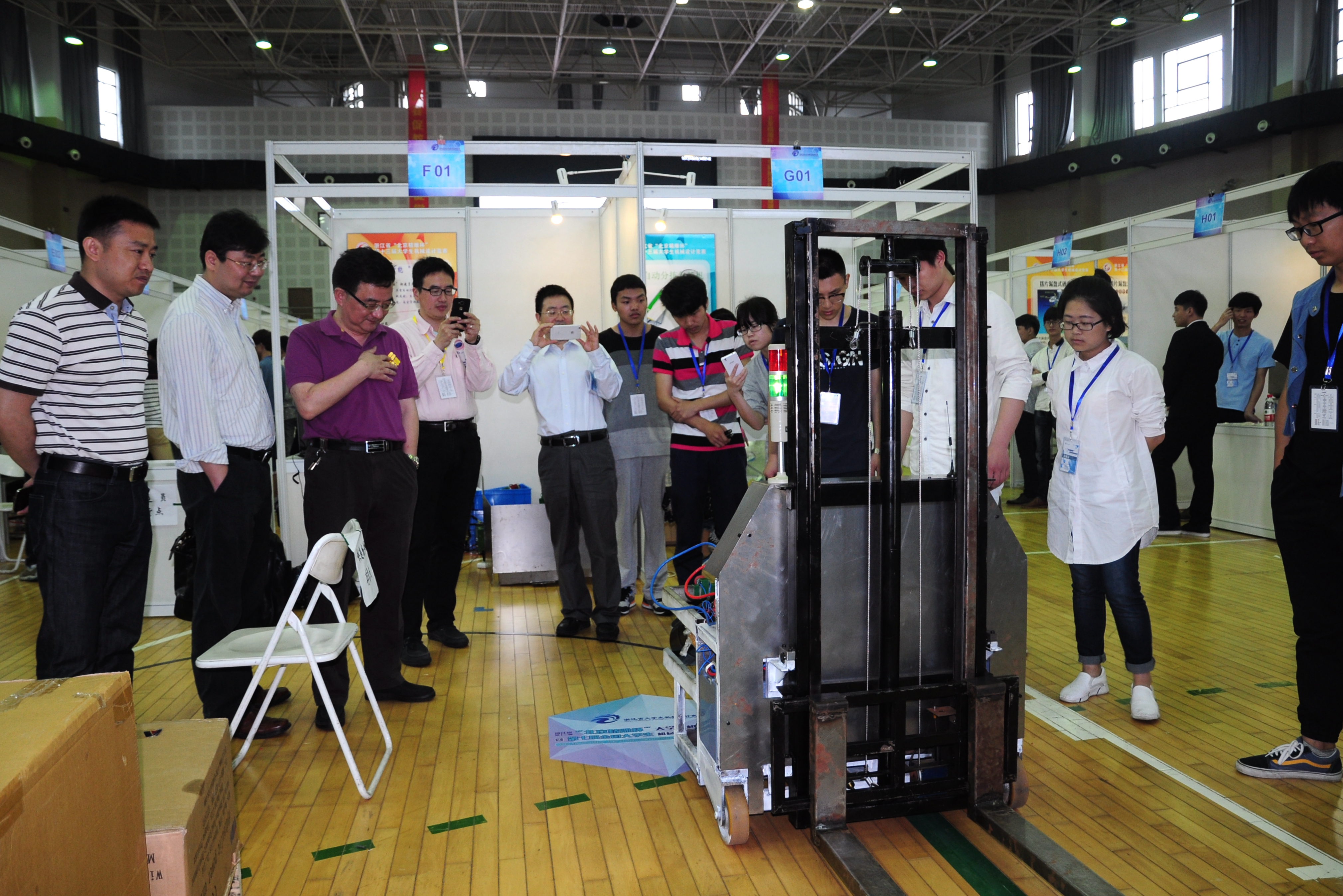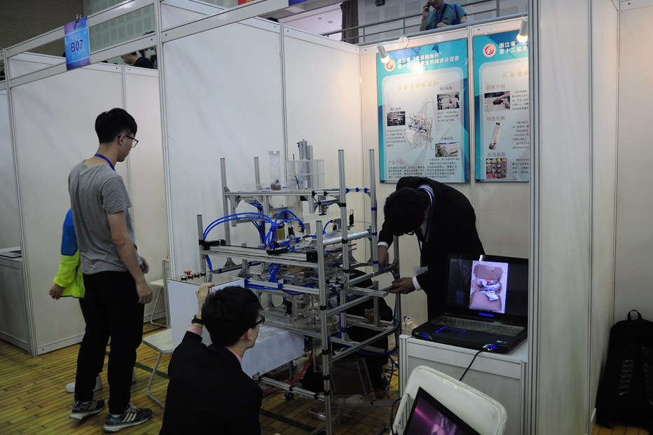 本届设计竞赛由浙江省大学生科技竞赛委员会主办,浙江工业大学、浙江省机械工程学会和我校承办,竞赛的主题为 “服务社会——高效、便利、个性化”,内容为 “以钱币的分类、清点、整理机械装置的设计,不同材质、形状和尺寸商品的包装机械装置的设计,商品载运及助力机械装置的设计三方面。在推进“中国制造2025”和工业4.0的大背景下,本届竞赛受到了多方关注,共有来自全省49所高校、267支代表队、1250名选手参加竞赛,同时也吸引了多家企业前来观摩。竞赛将从作品选题、实施方案、设计资料、研制过程、真实可信五个方面对参赛作品进行以百分之七十的实物模型、百分之三十的理论所得分及答辩成绩高低进行排序,并选出最优秀队伍代表浙江省大学生参加全国机械设计创新设计大赛。大赛期间还举办学术论坛等交流活动。