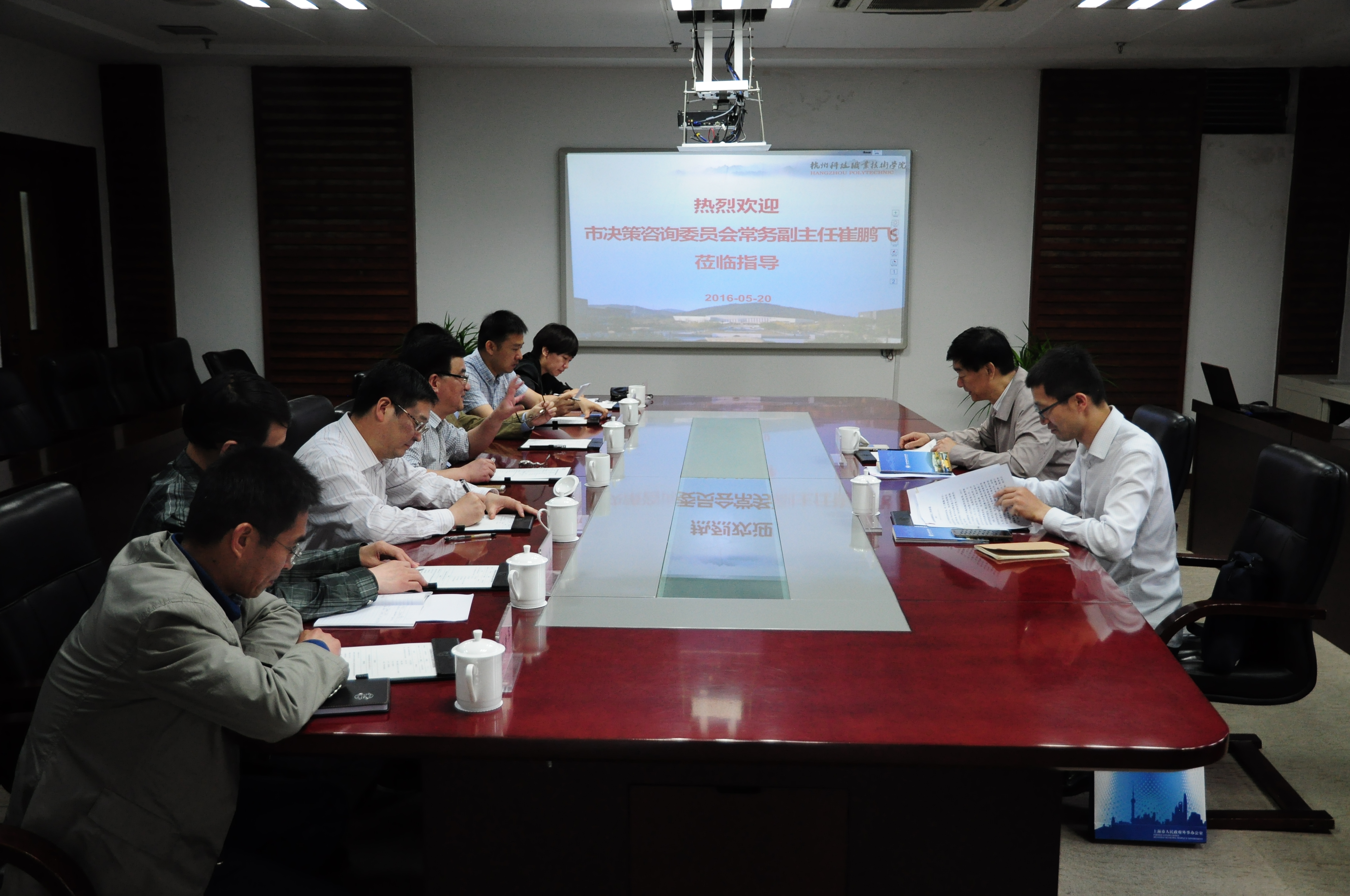 5月20日,杭州市决策咨询委员会常务副主任崔鹏飞、市委决策咨询委员会办公室主任助理俞春江来我校调研指导工作。校党委书记傅勤、校长谢列卫、副校长何树贵,党办、校办、科技处、产学研合作处、工商学院负责人热情接待了崔鹏飞一行。