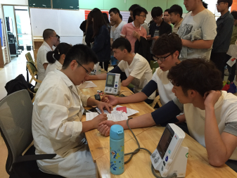 早上9点,20多名志愿者就来到活动现场为献血活动做准备。中午11点,浙江省血液中心的献血车驶入我校,虽然天空下着小雨,但是前来献血的同学络绎不绝。在志愿者的指引下,同学们按次序领取了登记表,进行了体检、血型测定和抽血。
