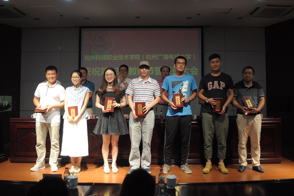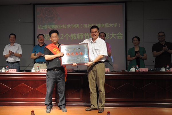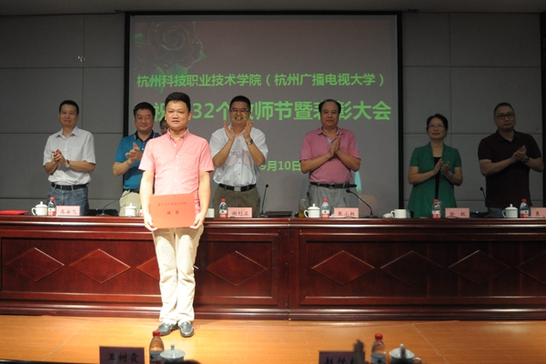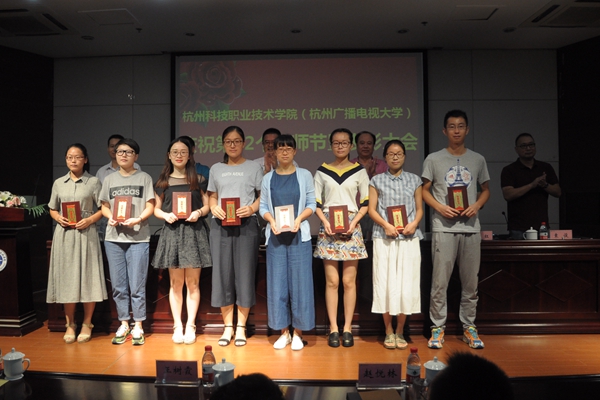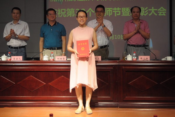 副校长何树贵宣读了表彰决定。校领导为获得 “浙江省优秀教师、高校优秀辅导员、三育人先进个人”、“杭州市优秀教师、优秀教育工作者”、“杭州市教育系统优秀教师、优秀教育工作者”、“杭州市劳动模范集体”、“校先进工作者”、“校三育人先进集体和个人”、“校优秀班主任、优秀辅导员”等称号的先进集体与先进个人颁发了荣誉证书。浙江省高校优秀教师罗晓晔作了题为《站在新起点,谋求新发展》的交流发言。