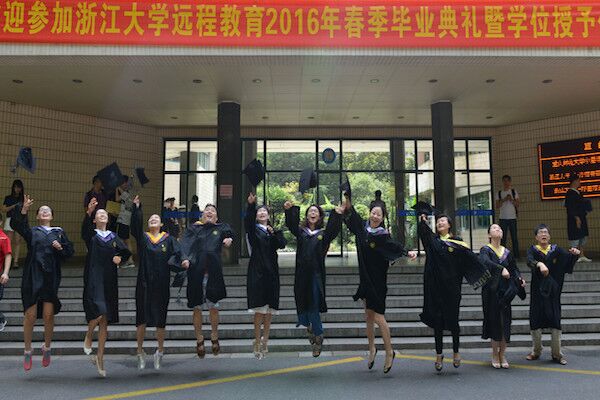 冯国文和陈韵雯向来宾详细介绍了我校目前在浙江大学远程教育招生、学务等方面的工作情况。我校现有浙江大学远程教育在校学生2600余人,是浙江大学规模最大的远程教育校外学习中心。近年来,我校进一步加强了与浙大远教学院的交流,今年共有24名获得了浙江大学学士学位的毕业生参加了在浙大华家池校区召开的学位授予仪式。浙大远程教育专职班主任宋元发同志还为此次学位授予仪式赋诗一首,并在学生中广为流传:“七月流火授爵封,黑袍加身饰帽领;寒窗三载南柯梦,华堂今朝笑意丰。师长正冠又拨穗,恩师寄语做大鹏;飞帽跳跃撒野趣,华家池畔留影踪。”