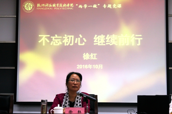 10月14日,副校长徐红为直属第一党总支和教育学院、严州校区管理办联合党总支全体党员作了题为《不忘初心,继续前行》的专题党课。
