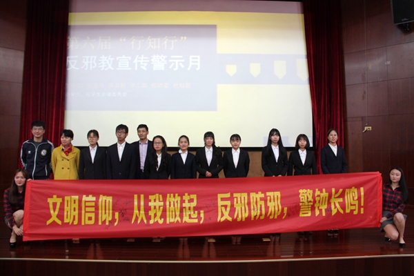本届反邪教宣传月活动以“文明信仰,从我做起。反邪防邪,警钟长鸣!”为主题,将于11月在全校范围开展“演绎反邪故事,传播科学思想”、“我的形象你来设计”、“反邪、防邪,我是代言人”等系列活动,旨在普及反邪教知识,提高广大学生防范和抑制邪教组织的能力。