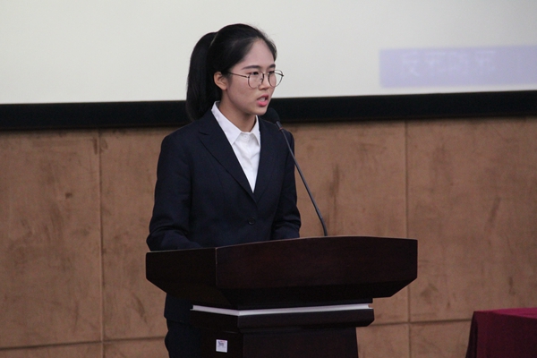 校学生自律委员会主席助理楼鑫宜同学介绍了本届反邪教宣传月的活动安排。教育学院的徐薇同学作为学生代表上台发言,她认为邪教是个冒用宗教名义,利用制造、散布迷信等手段蛊惑、蒙骗他人,危害社会的非法组织,呼吁全体在校生拿起“科学”这一武器,战胜一切错误和迷信思想,坚决抵制邪教。