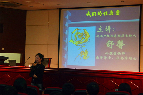 11月11日下午,浙江省计生协特聘青春健康教育专家、浙江省知名广播节目主持人、国家二级心理咨询师舒馨老师应邀来我校作《我们的性与爱》青春健康专题讲座。