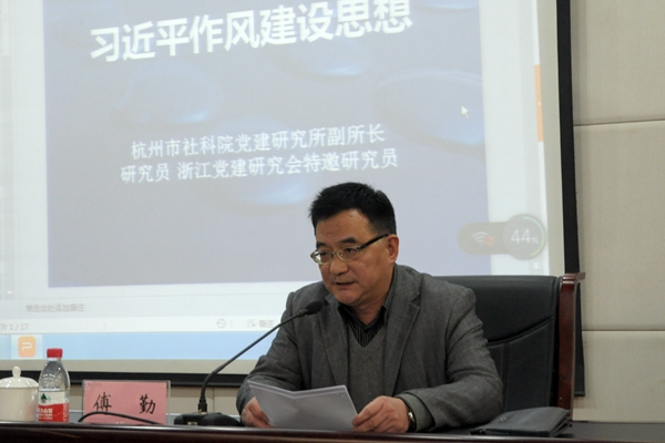 12月6日,我校召开党委理论中心组(扩大)学习会,专题学习习近平关于党风廉政建设的重要讲话精神。校党委书记傅勤主持学习会,校领导班子、全校处科级干部、校纪检委员、全校党支部书记参加了学习。杭州市社会科学院党建研究所副所长、研究员肖剑忠应邀作了《习近平作风建设思想》专题报告。