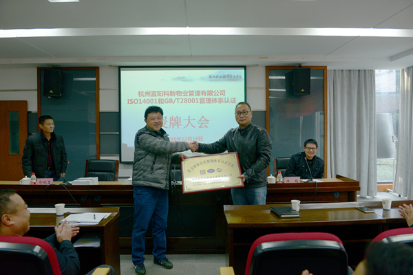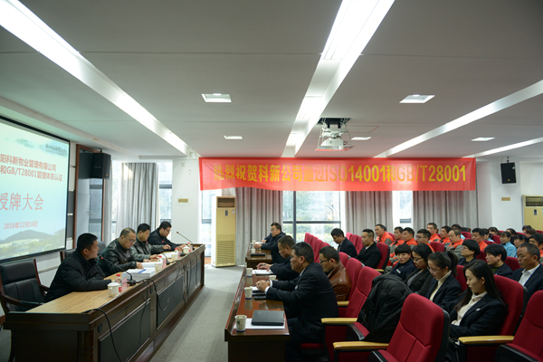 2016年12月16日,科新公司在综合楼2109会议室举行ISO14001环境管理体系GB/T28001职业健康管理体系认证授牌仪式。副校长袁俊代表学校接受北京中安质环认证公司授牌。科新公司负责人及公司相关人员50余人参加了授牌仪式。