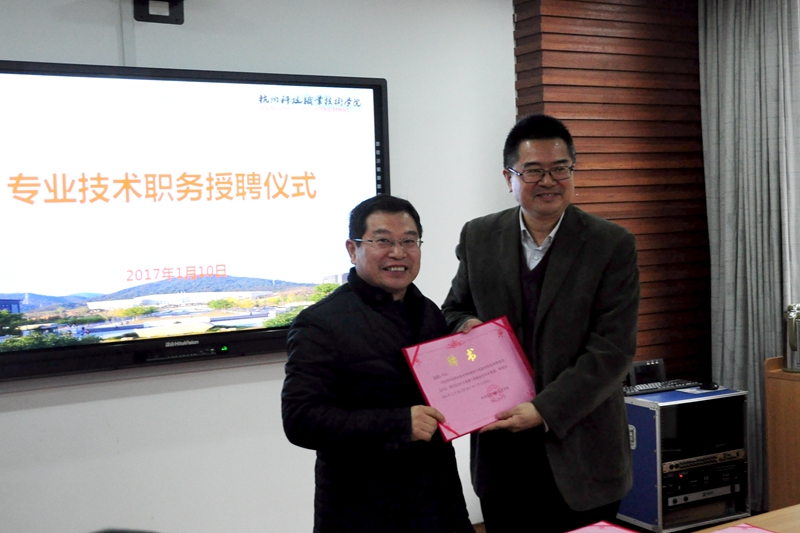 2017年1月10日下午,我校举行2016年专业技术职务授聘仪式,校教师专业技术职务评聘委员会主任、校长谢列卫,校教师专业技术职务评聘委员会副主任、副校长何树贵出席授聘仪式。2016年晋升专业技术职务的26位教师和科技处、教务处、人事处、宣传部等相关部门负责人参加了授聘仪式。