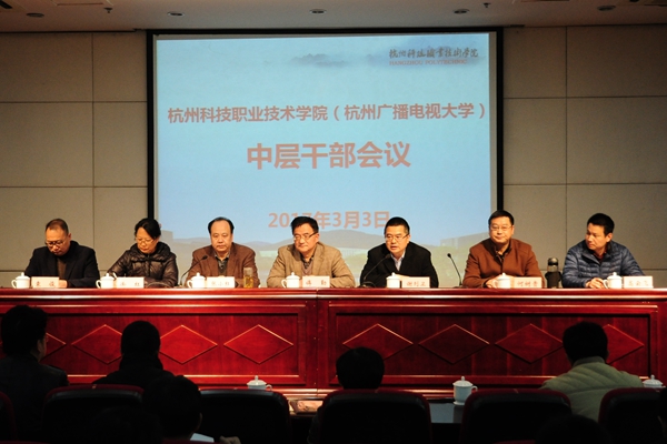 党委副书记、校长谢列卫代表学校党委做2017年党政重点工作布置。2017年,学校工作的基本要求是要坚持以立德树人为根本,以改革创新为动力,以稳中求进为总基调,以争创“全国同类院校一流水平”为总目标,加强学校党的建设和内涵建设,加强学校治理体系和能力建设,加强育人模式创新和项目建设,不断提升综合办学实力,为杭州加快建设独特韵味、别样精彩的世界名城做出贡献,以优异成绩迎接党的十九大和省十四次党代会胜利召开。谢列卫指出,今年学校重中之重工作是要抓好党的建设和内涵建设、开好学校首届党代会和三届一次教代会、深化新一轮校内机构改革和校内管理体制机制改革、搞好校内中层干部换届聘任和教职工岗位聘任工作、应对浙江省高考招生制度改革带来的挑战及当前国际教育合作面临的挑战、推进餐饮实训楼和大江东“智能制造”开放性公共技能实训基地项目建设、用好国家开放大学杭州实验学院和杭州社区大学两块牌子、确保校园平安和廉政平安。