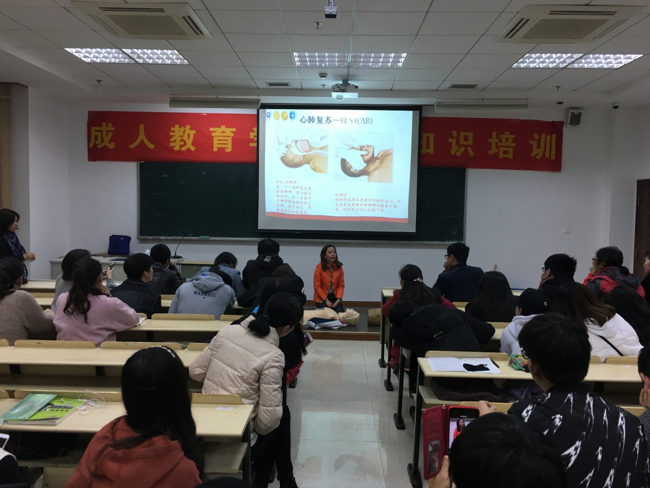 3月30日下午,成人教育学院在翠苑校区举行急救技能培训,浙江大学医学院附属邵逸夫医院急诊科副主任蔡华波应邀担任主讲。成人教育学院副院长方兵、公共事务管理处副处长陈仑、医务室陈晓群医生,翠苑校区宿管、保安、辅导员、班主任、学生代表共计64人参加了本次培训。
