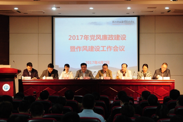 4月7日下午,我校召开2017年党风廉政建设暨作风建设工作会议。全体校领导出席会议,全校处、科级干部,校纪检委员,各党总支委员,各党支部书记参加会议。市纪委驻教育局纪检组派出代表列席会议。会议由校党委副书记、校长谢列卫主持。