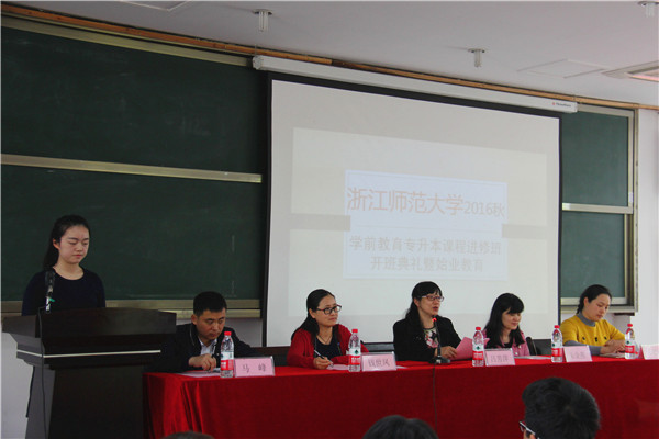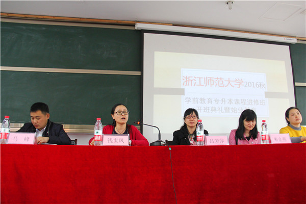 4月7日,浙师大幼儿师范学院2016秋季学前教育专升本进修班开班典礼暨始业教育在严州校区举行。浙师大幼儿师范学院成教办主任吕芳萍,我校教育学院党总支书记、副院长钱世凤,专升本项目负责人马峰,成教学院毛建云,及本次进修班的163名学员参加了开班典礼。