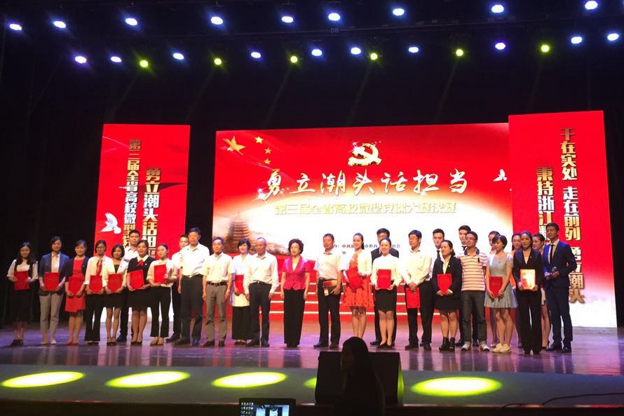 浙江省教育工委组织开展的第三届全省高校微型党课大赛,以“勇立潮头话担当”为主题,共有90所本、专科高校报送了90件微党课视频。我校党委对该比赛非常重视,于4月初正式启动大赛选拔赛。全校13个党总支报名参赛,党委组织部统一安排了视频拍摄,邀请了专门的评审委员对参赛作品进行了评比,并选送了选拔赛特等奖的选手参赛。经过省教育工委组织的初赛,最终刘雯老师进入决赛。