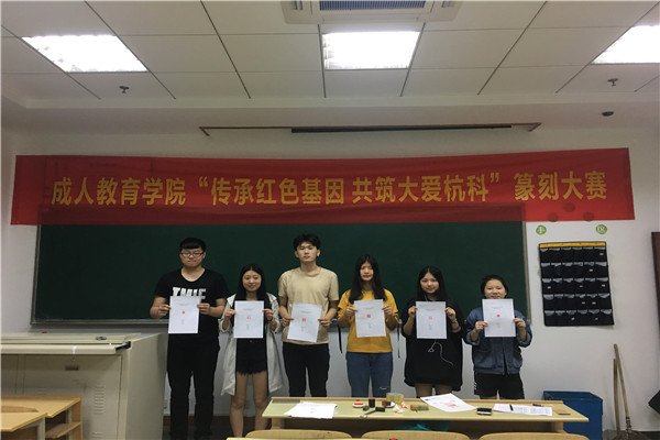 5月26日,成人教育学院首届学生篆刻大赛在翠苑校区举行。本次大赛以“传承红色基因,共筑大爱杭科”为主题,由学院学生会主办、学院篆刻社团承办,共有14名学生参加了比赛。