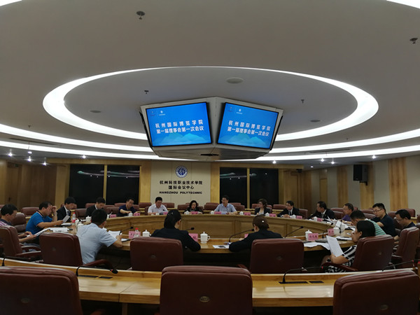 6月23号上午,杭州国际博览学院第一届理事会第一次会议在杭州科技职业技术学院国际会议中心召开。理事会理事长唐雪,副理事长何树贵、冯元植、李美、张敏以及蒋龙成、黄健、洪新军等19名理事会成员参加了会议。会议表决通过了《杭州国际博览学院理事会章程》和《杭州国际博览学院2017年度工作计划》。会议由副理事长、杭州科技职业技术学院副校长何树贵主持。