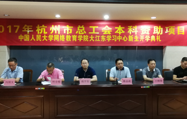 8月20日上午,杭州市总工会本科资助项目“中国人民大学网络教育杭州学习中心(大江东)新生开学典礼”在继续教育学院临江分院隆重举行。杭州市总工会宣教部部长祝宇安、大江东产业集聚区组织部副部长(工会副主席)叶小明、临江街道工会副主席王钢翔、临江成校校长沈文钊、继续教育学院院长陈志凌、党总支书记冯国文以及来自大江东产业集聚区各企业单位的67位受资助的学员一同参加了开学典礼。