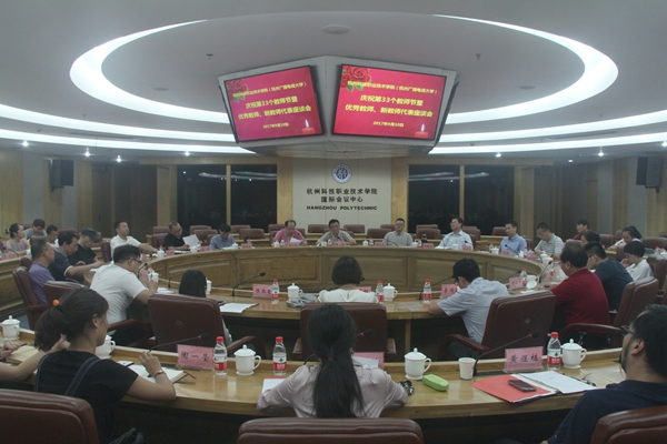会上,全体与会人员还一同观看了宣传教育片《做学生的引路人》,并开展了交流发言。浙江省第五届师德先进个人、城市建设学院副教授雷彩虹,杭州市优秀教师、教育学院陈亚青副教授,杭州市第四届师德先进个人、机电工程学院高级技师程文作为优秀教师代表,在座谈会上分享了他们各自多年来的教育教学经验,畅谈了对“好教师”的理解和对我校更快更好发展的期望。教育学院宋坤博士、信息工程学院黄煜栋副教授代表新教师发言,他们坚定地表示,一定会虚心向其他优秀教师学习,将我校“爱满天下”的办学精神当作自己今后从教的原则和最高理想。