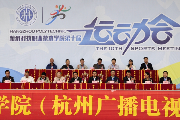 10月20日,我校第十届运动会在高桥校区隆重开幕。校党委书记傅勤,校长谢列卫,党委副书记张小红,副校长何树贵、寿伟义,纪委书记高云飞,副校长袁俊,原副校长徐红,校党委委员赵悦林、罗明誉出席了首日开幕式。党委书记傅勤代表学校宣布杭州科技职业技术学院第十届运动会开幕。开幕式由校体委副主任、纪委书记高云飞主持。