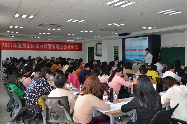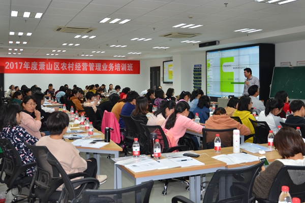 10月26日, 2017年度萧山区农村经营管理业务培训班在工商学院创业楼新道行知商创基地举行,来自萧山区各街镇的近91名业务骨干参加了此次培训。