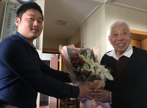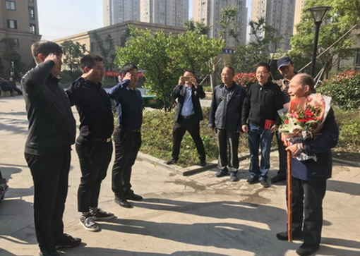 新时代退役士兵向老一辈抗战英雄李星鲜花