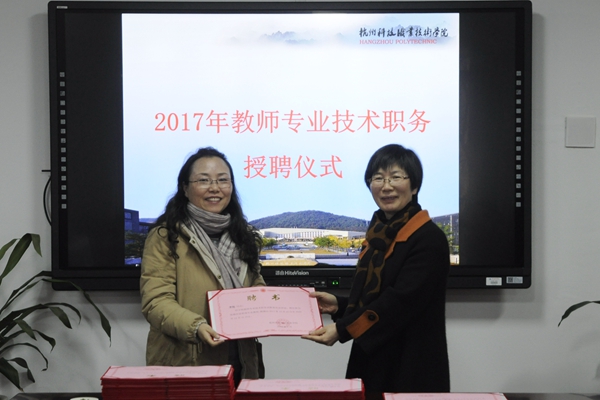 2018年1月11日下午,我校举行2017年专业技术职务授聘仪式。校教师专业技术职务评聘委员会主任、校长许淑燕,校教师专业技术职务评聘委员会副主任、副校长何树贵出席。人事处、教务处、科技处负责人及2017年晋升专业技术职务的27位教师参加了授聘仪式。
