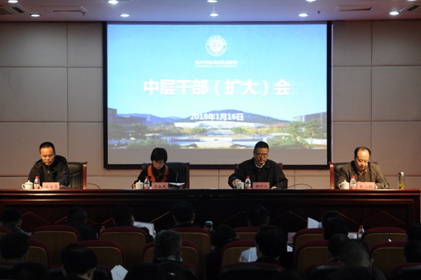 1月16日,校党委书记谢列卫主持召开中层干部(扩大)会议,全体校级领导、全体中层干部(含原调研员)、各党支部书记参加了会议。会议就筹备召开学校首届党代会进行了动员和工作布置,就期末、寒假及开学初的重点工作进行了统筹安排。