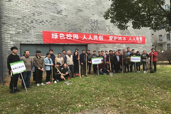 3月12日,我校在高桥校区组织开展了“播撒绿色希望,共建美好校园”主题植树活动。副校长寿伟义、袁俊,学生处、公管处、科新公司等部门负责人,各二级学院党总支书记、辅导员及学生代表等近百人,一同沿着校实训楼的墙种下了两百多株凌霄。