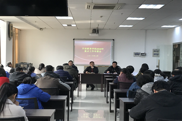 3月9日下午,开放教育学院召开2018年重点工作布置会。会议由副院长方兵主持,开放教育学院全体在职教工参加会议。