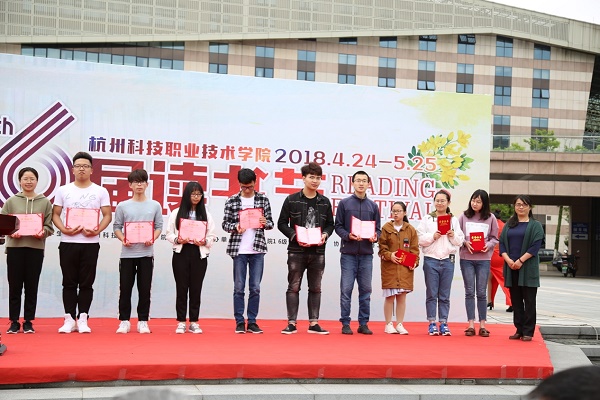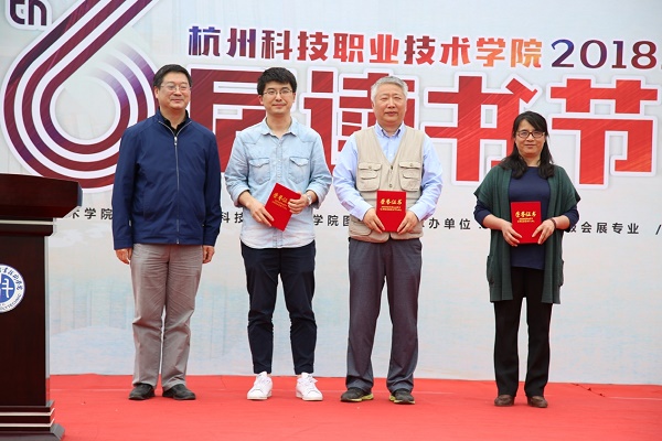 何树贵副校长为读书节开幕式致辞,他表示,举办读书节是为了让大家享受阅读的乐趣,养成良好的阅读习惯,在校内营造浓厚的阅读氛围,使经典阅读成为全校师生的一种生活常态,进一步提高审美情趣和人文底蕴。开幕式现场,何树贵副校长为第五届读书节捐书100册以上的读者颁发了纪念证书,感谢他们对学校图书馆建设的支持。